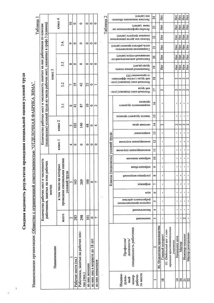 Перечень мероприятий по улучшению условий труда работников ООО «ОФ ЗИМА», на рабочих местах которых проводилась СОУТ